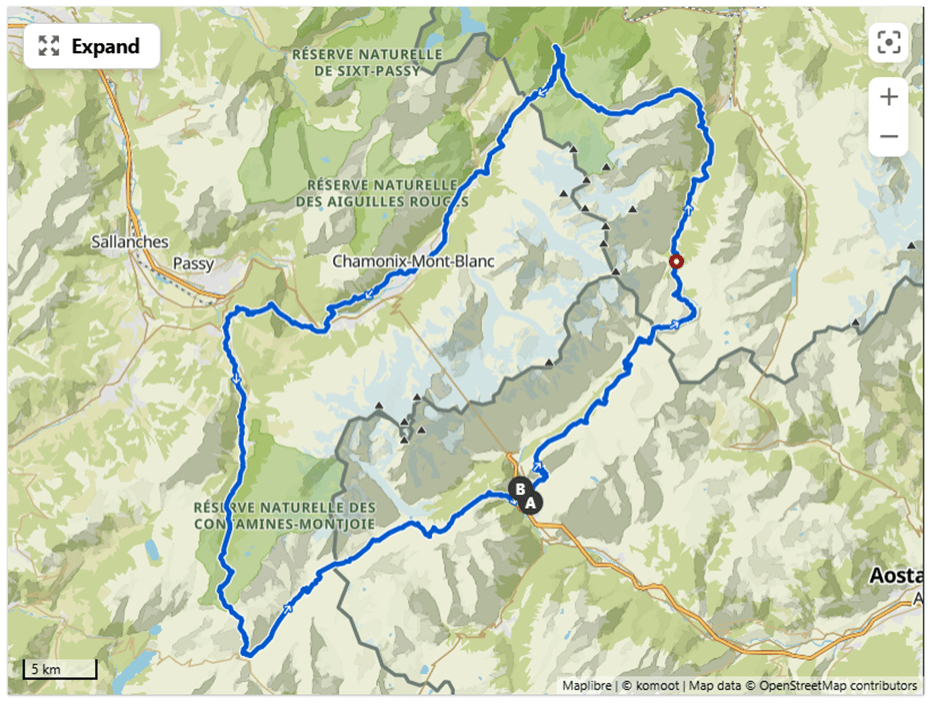 The final stage. Every step carries meaning as you return to Chamonix, completing the full loop. A journey of effort, connection, and unforgettable landscapes comes full circle.